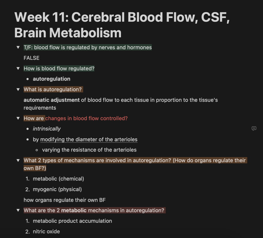 I highly recommend watching these videos and getting acquainted with which study methods you are going to implement before you begin the program! It will be difficult to learn a new system while also learning all the information CRNA school throws at you - In Notion, you can color-code the questions based on their difficulty (ex: green = easy, orange = medium, red = difficult) similar to how Anki has their spaced repetition buttons