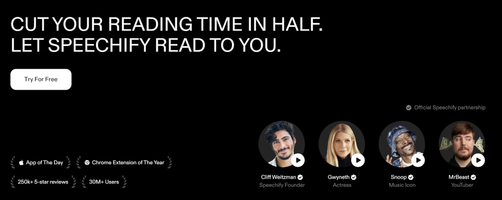 *Speechify is always running sales. This link provides you with a yearlong subscription for $60.