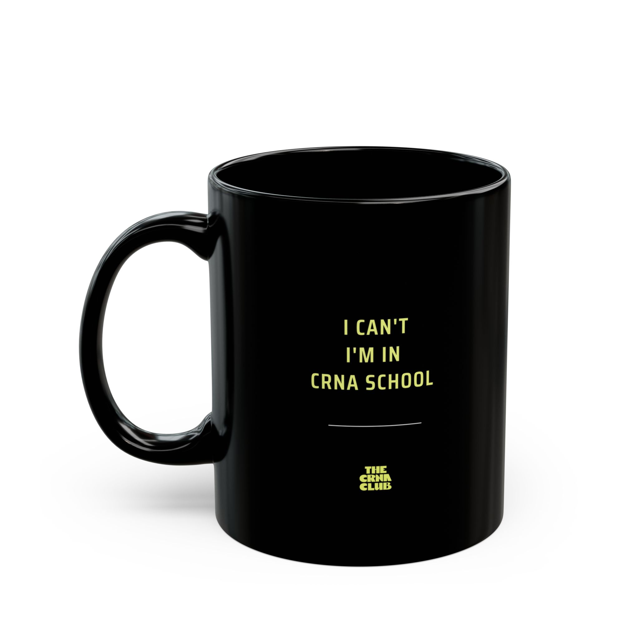 This mug says what every SRNA is thinking: I can’t — I’m in CRNA school. Made from durable black ceramic with a glossy finish, it’s built for long days, longer nights, and the endless stream of caffeine required to power through care plans, clinicals, and endless Anki decks.