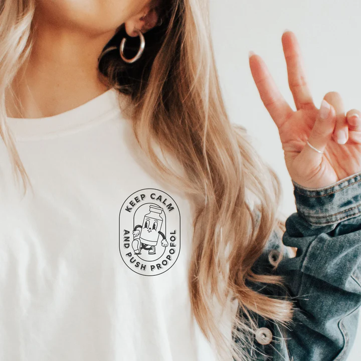 Keep calm, push propofol, and carry on. This relaxed-fit, medium-weight cotton tee is the perfect everyday shirt for CRNAs, SRNAs, and anesthesia lovers who appreciate clean inductions and cleaner humor. Soft, breathable, and easy to style with scrubs or joggers, it’s your new go-to for clinical days, study days, or just embracing your anesthesia era.